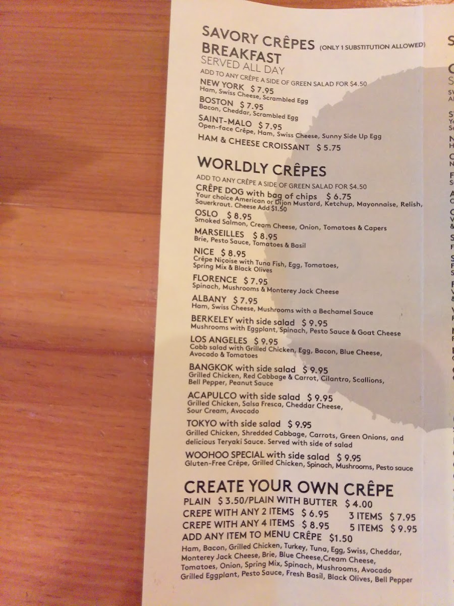 What I like most is how easy it is to linger over the choices. One minute you’re eyeing a classic butter and sugar crepe, and the next you’re tempted by something heartier with smoked salmon or roasted chicken. Pair that with a strong cup of coffee or a smooth latte, and it turns into the kind of relaxed brunch or midday break you didn’t realize you needed.